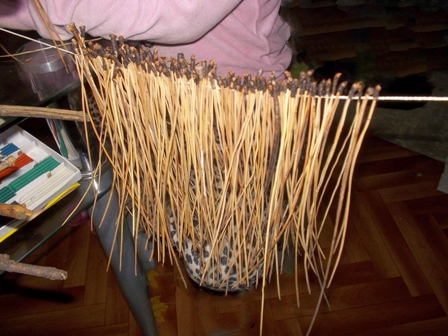 Первое, что мы сделали это соломенная юбочка для нашей будущей африканки. И наклеили шишки на ветки сделали ножки.